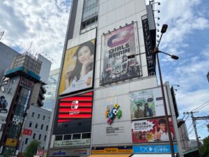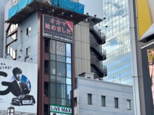 駅を出てすぐ目に飛び込んでくるのは、ビルの壁面にぎっしりと並んだ看板と、流れるように映像が切り替わるデジタルサイネージの数々。